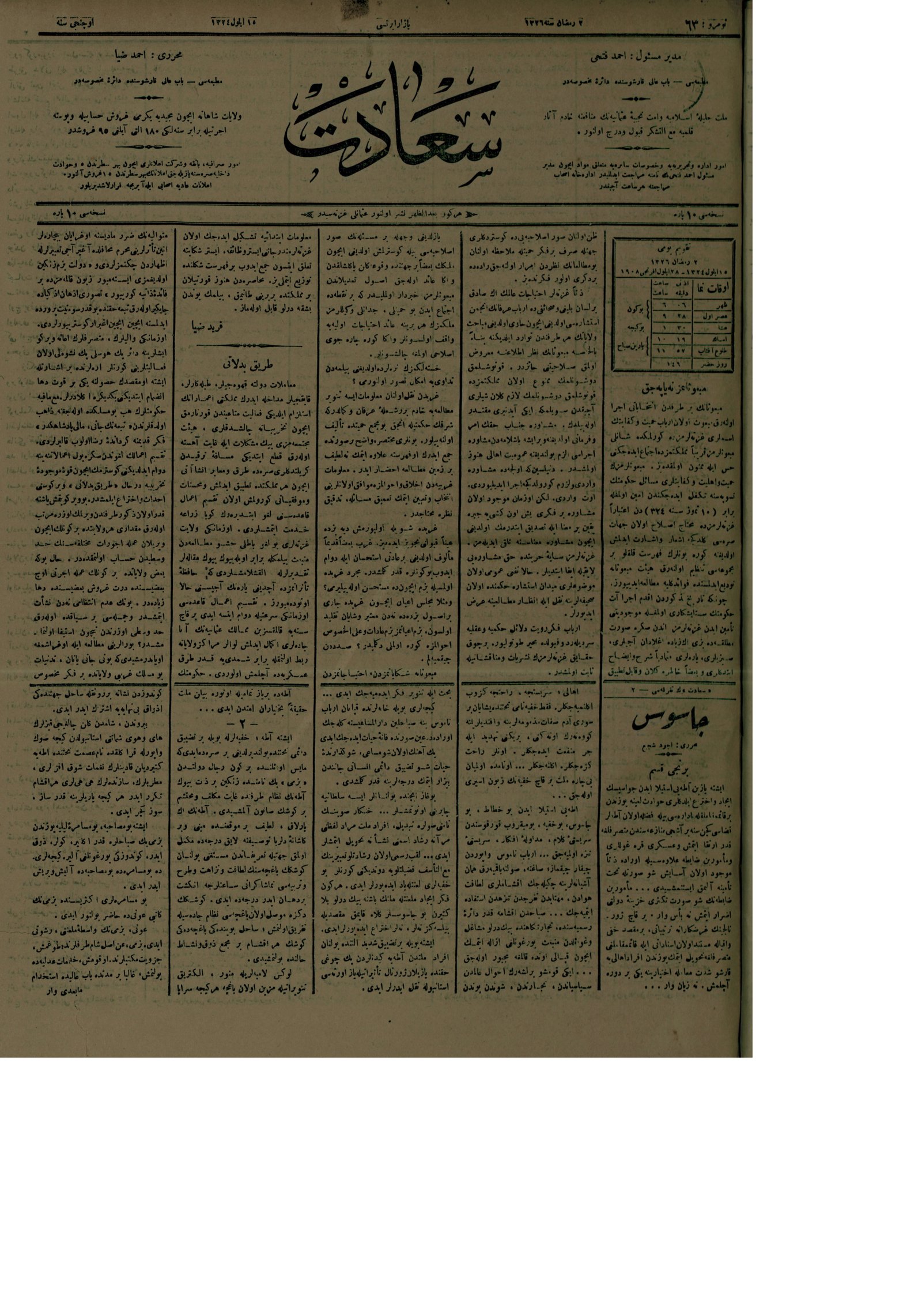 Taranan gazetenin/derginin ilk sayısının tarihi: 8 Ağustos 1324 (1908)