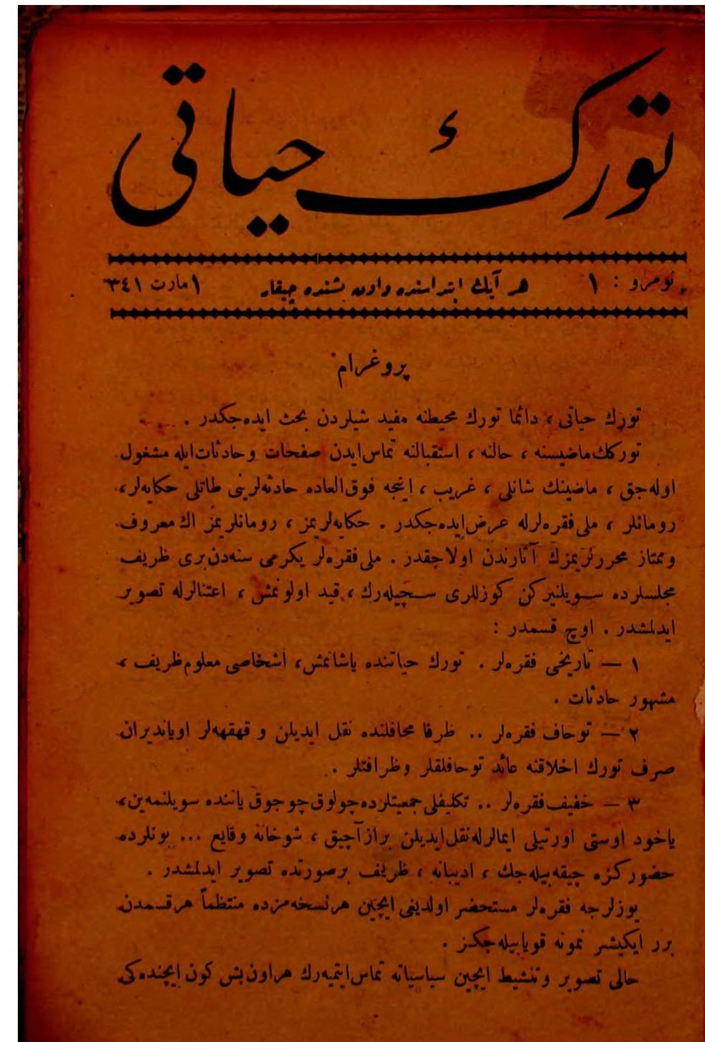 Türk Hayatı Taramanın yapıldığı arşivin adı: Hakkı Tarık Us Taranan gazetenin/derginin ilk sayısı tarih: 1 Mart 1341(1925) Taranan gazetenin/derginin son sayısı tarih: 15 Mart 1926 Taranan gazetenin/derginin son sayısının numarası: 26 Eksik sayılar: -