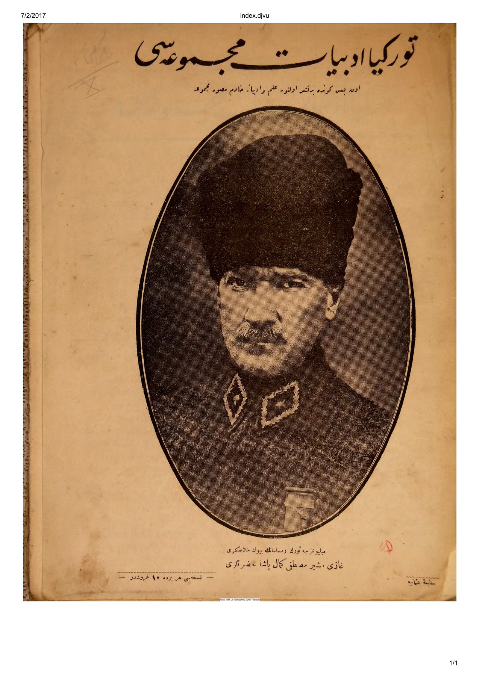 Türkiye Edebiyat Mecmuası Taramanın yapıldığı arşiv: Hakkı Tarık Us Taranan gazetenin/derginin ilk sayısının tarihi: 1 Eylül 1339 (1923) Taranan gazetenin/derginin son sayısının tarihi: 22 Nisan 1341 (1925) Taranan gazetenin/derginin son sayısı: 1 (7+1) Eksik sayılar: