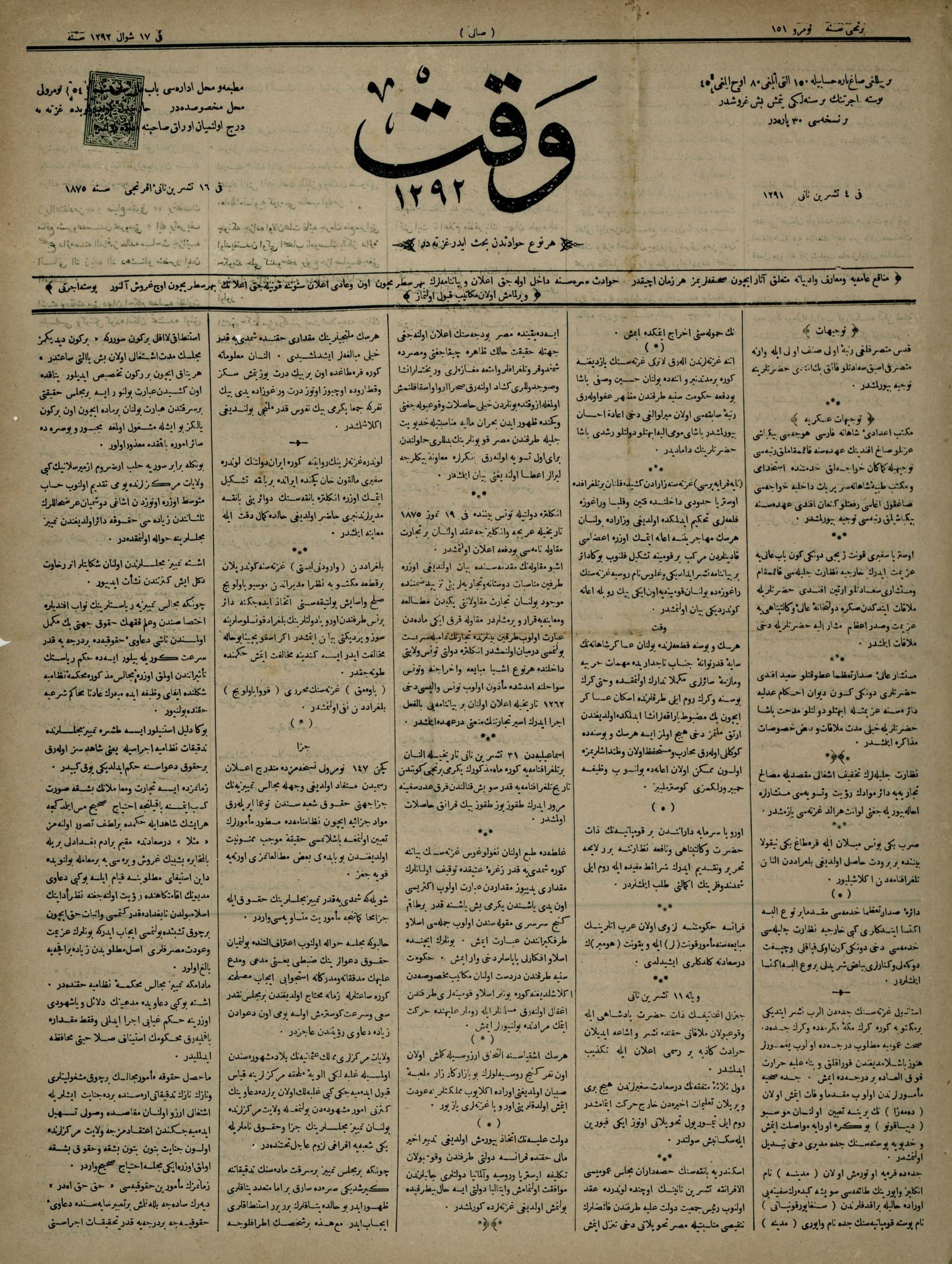 Taranan gazetenin/derginin ilk sayısının tarihi: 26 Mayıs 1875